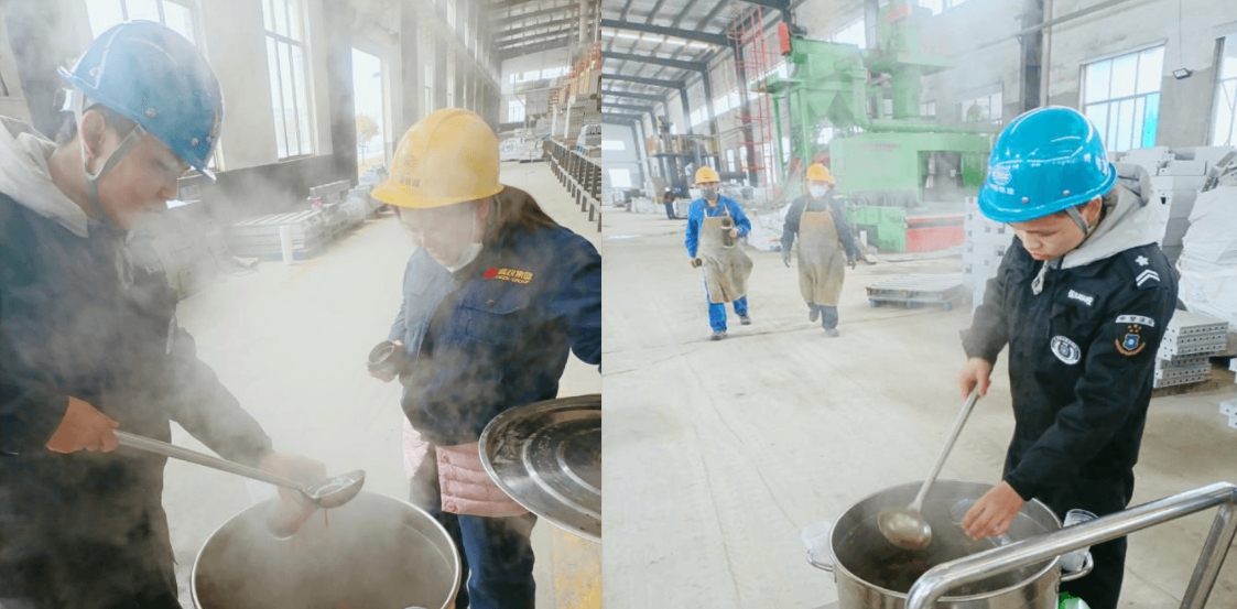 每天中午,行政后勤组安排人员将生姜、红糖等食材煮成热腾腾的姜茶,随后召集安保人员领取并分发到各个车间,切实为一线员工送上一份冬日温暖和关怀,保障每个员工在寒冷天气下都能喝上一口热乎乎的姜茶,驱走冬日的寒气。