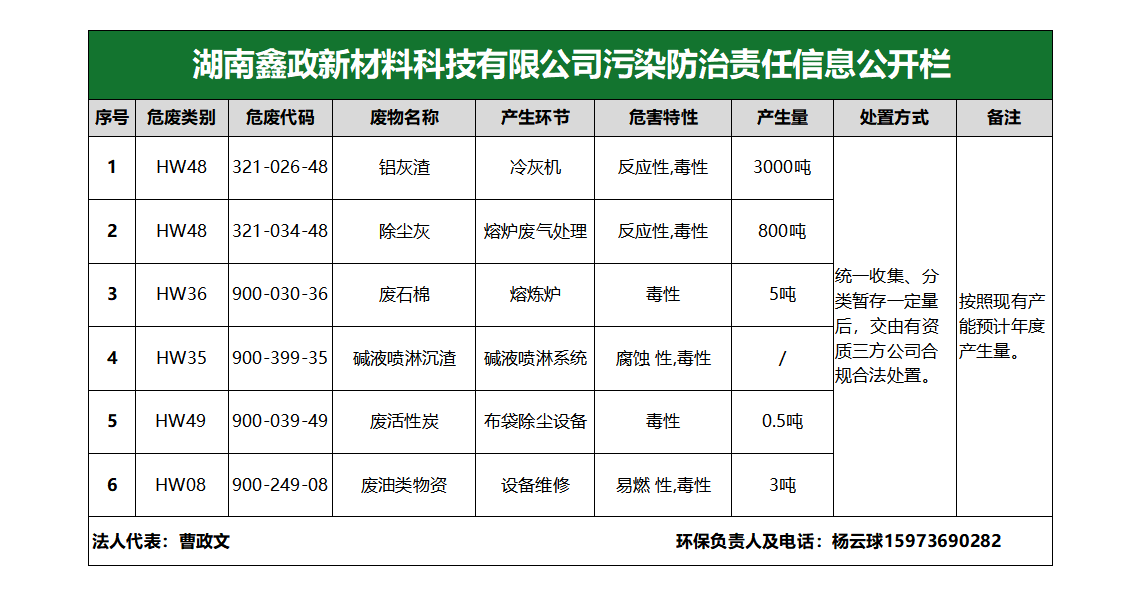 鑫政新材料科技有限公司污染防治责任信息公开