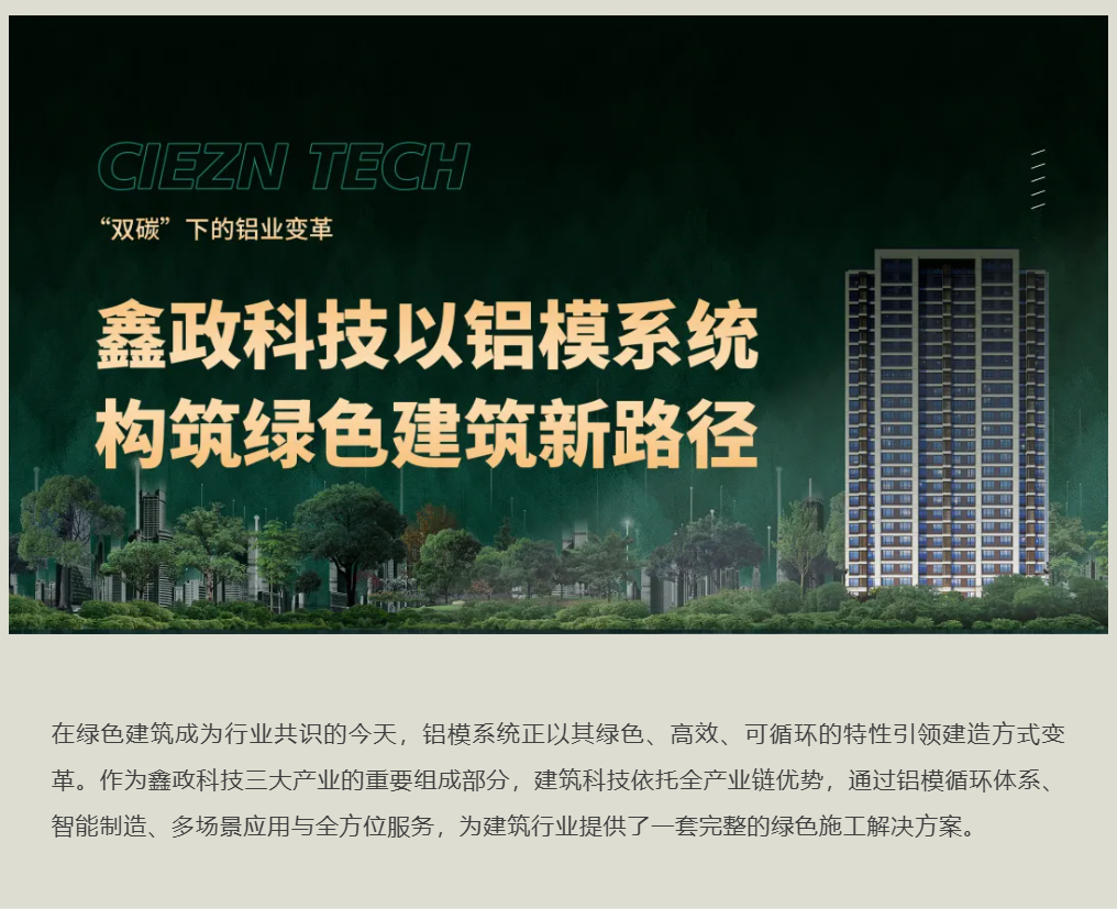 目前,鑫政铝模市场占有率已跻身行业第一方阵。未来,鑫政将继续以创新为驱动,通过铝模系统的持续升级与服务优化,在这条崭新的绿色发展路径上,与合作伙伴携手共建绿色、低碳、可持续的建筑未来。